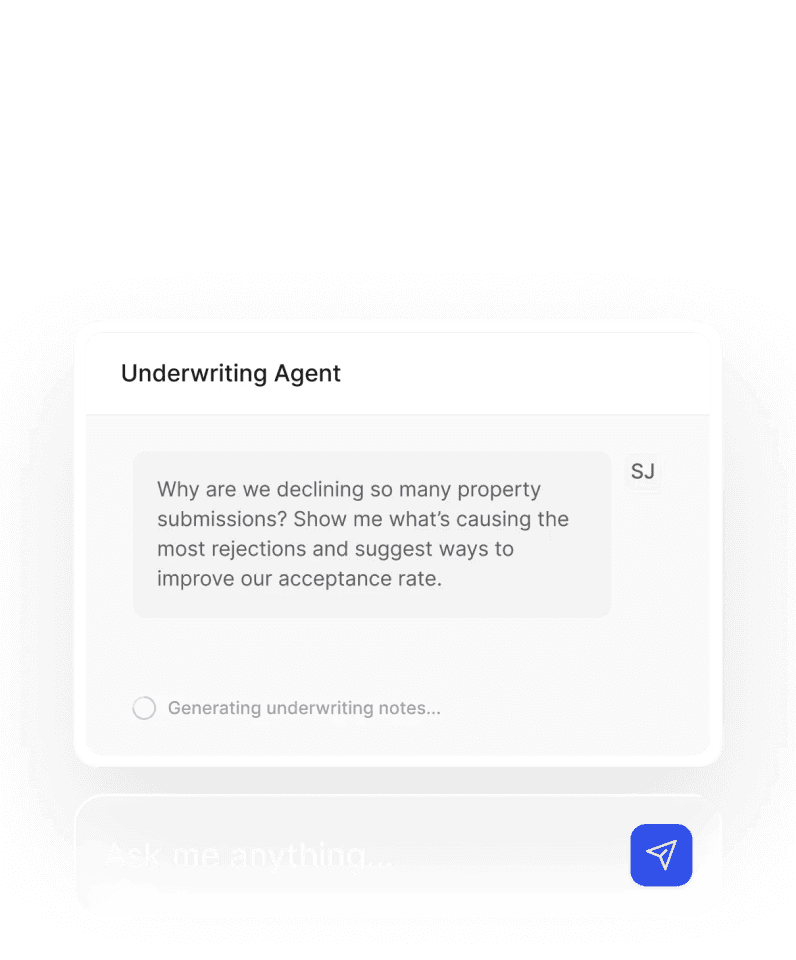 Connect your data, encode your logic, and keep the full underwriting context all in one place, so your edge keeps sharpening over time.